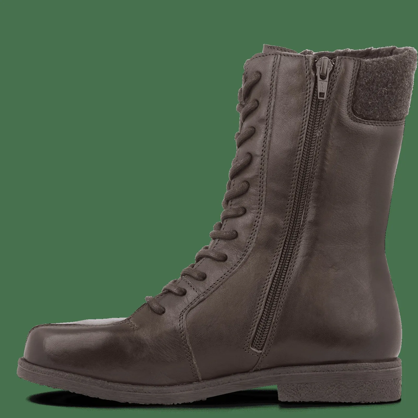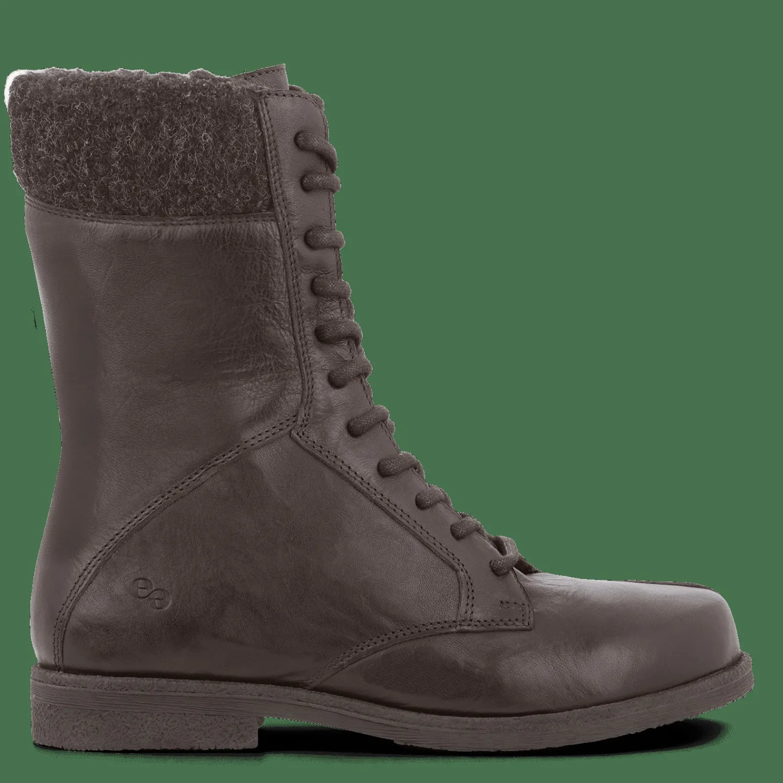 Støvle Med En Smart Krave I Genanvendt Filt. Kraven Matcher Farven På Det Vegetabilsk Garvede Læder Og Giver Støvlen Et Flot Og Anderledes Udtryk. Indvendig Er Støvlen Fóret Med Et Tyndt Uldfór, Så Du Alt I Alt Får En Lun Og Komfortabel Vinterstøvle, Der Er Fremstillet Med Omtanke For Miljøet.